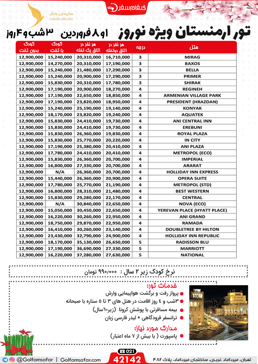 شرکت خدمات مسافرتی و جهانگردی گلفام سفر مفتخر است که بیشترین حجم مسافرین را به مسیرهای مختلف در سراسر جهان مخصوصاً در مسیرهای کشور ترکیه از جمله شهرهای آنتالیا ، استانبول از طریق پروازها و خطوط هوایی معتبر به خود اختصاص داده و با ایجاد پکیج ها و تورهای متنوع و جذاب و با کمترین هزینه برای مسافرین نقش مهمی را در صنعت توریسم و جهانگردی ایفا نمایند.