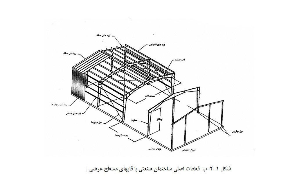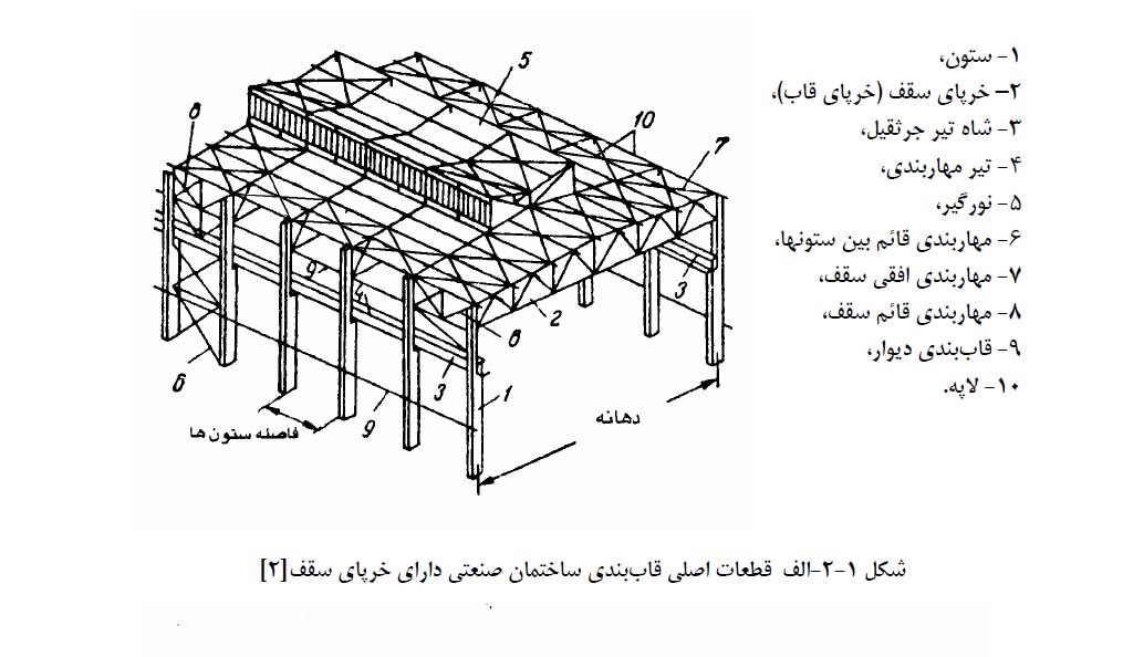 قطعات اصلی قاب بندی ساختمان صنعتی دارای خرپای سقف