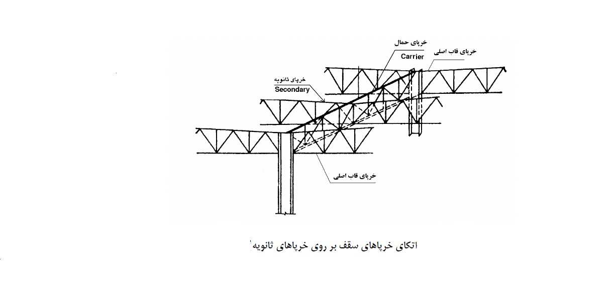 در برخی موارد لازم است که بنا به اقتضای ویژگی کاربری فضای داخلی ساختمان صنعتی چند دهانه، فاصله ستونها در ردیفهای میانی بیش از فاصله آنها در ردیفهای کناری ساختمان باشد. در این حالت برای نگه داری خرپاهای سقف از خرپاهای ثانویه که در امتداد ردیف ستو نهای میانی نصب میشوند و عملاً جایگزین ستونهای حذف شده هستند، استفاده میشود.
